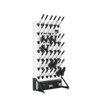 The heating system is electronically controlled via a 4,3" touch screen, providing intuitive, quick access to all functions – including adjustment of operating modes, heating temperature, and programming of time intervals. The interchangeable arms are equipped with spring-loaded nozzles that open the air supply only when a boot is placed on the arm.