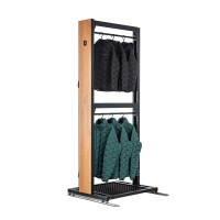 Racks and dryers with an open interior of the frame can be optionally equipped with a steel tub with a rubber mat, which serves for collecting water and dirt dripping from stored skis, snowboards or dried boots. The tub is made of galvanised steel, thus maintaining its resistance to corrosion. Adjusting the structure to the frames of the racks and dryers allows for easy removal and emptying. The use of the tub reduces moisture and dirt on the floor and in the area of the rail system.