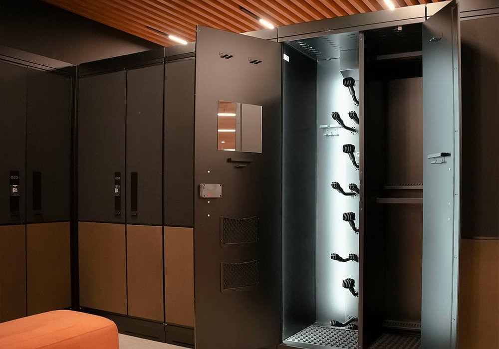 For dynamically developing Shymbulak Mountain Resort, we designed a ski depot as part of the resort’s winter infrastructure, set within a striking mountain landscape. The project includes 350 large lockers, some of which are equipped with the new Skiwear module, a technology designed for the efficient drying of ski jackets and trousers. A clear layout, functional solutions, and attention to detail define the space, complemented by a distinctive accent that adds an individual touch.