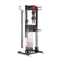 Stelaż składa się z takich elementów jak rama, kolumny, dwa poziomy i widły. Dostępne są dwa rodzaje poziomów. Pierwszy z nich przeznaczony jest do przechowywania widełek do nart, natomiast bardziej złożona konstrukcja drugiego typu umożliwia przechowywanie kijków narciarskich. Każdy widelec na narty jest pokryty specjalną antypoślizgową farbą gumową i może pomieścić do trzech par nart. Widelce na kijki mają postać specjalnie zaprojektowanych dwóch stalowych ramion, pomiędzy którymi można przechowywać do czterech par kijków. Poziome poziomy o regulowanej wysokości umożliwiają przechowywanie nart i kijków o różnych rozmiarach oraz dają możliwość dowolnego rozmieszczenia widelców na poziomach, co przekłada się na wyjątkową funkcjonalność i pojemność tego bagażnika.