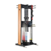Stelaż składa się z takich elementów jak rama, kolumny, dwa poziomy i widły. Dostępne są dwa rodzaje poziomów. Pierwszy z nich przeznaczony jest do przechowywania widełek do nart, natomiast bardziej złożona konstrukcja drugiego typu umożliwia przechowywanie kijków narciarskich. Każdy widelec na narty jest pokryty specjalną antypoślizgową farbą gumową i może pomieścić do trzech par nart. Widelce na kijki mają postać specjalnie zaprojektowanych dwóch stalowych ramion, pomiędzy którymi można przechowywać do czterech par kijków. Poziome poziomy o regulowanej wysokości umożliwiają przechowywanie nart i kijków o różnych rozmiarach oraz dają możliwość dowolnego rozmieszczenia widelców na poziomach, co przekłada się na wyjątkową funkcjonalność i pojemność tego bagażnika.