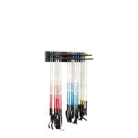 Przechowywanie kijów narciarskich opiera się na hakach wykonanych z ocynkowanej blachy o grubości 2mm. Ich konstrukcja obejmuje dwa długie wyprofilowane ramiona, pomiędzy które wkładane są kije. Haki mocowane są w stalowych poziomach, zawierających liczne otwory rozłożone na czterech wysokościach, umożliwiając optymalne dopasowanie rozmieszczenia haków do długości kijów, wpływając także na zwiększenie pojemności układu przechowywania. Każdy hak o standardowej długości mieści do 4 par kijów i jest zakończony parą plastikowych elementów, zabezpieczających kije przed wypadaniem. Dostępne kolory plastikowych końcówek odpowiadają oznaczeniom długości kijów rentalowych, ułatwiając ich przechowywanie w odpowiednim porządku.